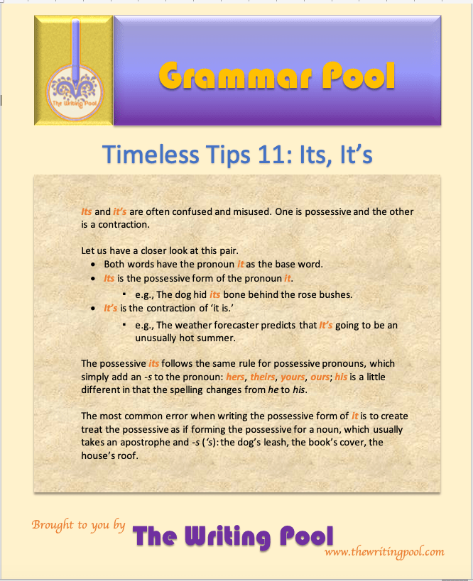 Timeless Tips 11: Its, It’s Share this: Click to share on X (Opens in new window) X Click to share on Facebook (Opens in new window) Facebook Like Loading...